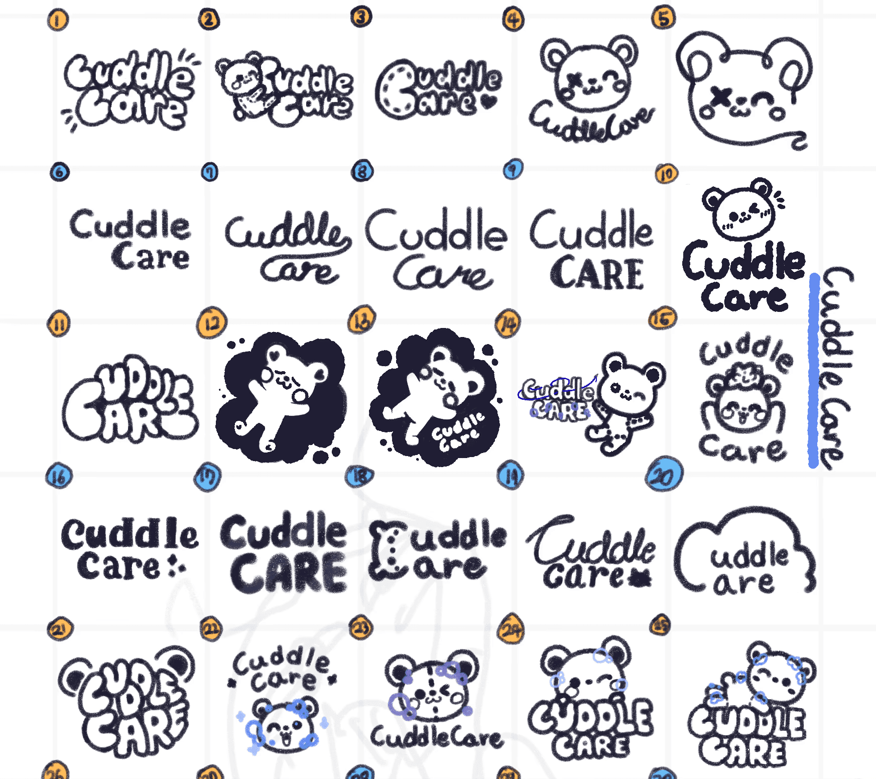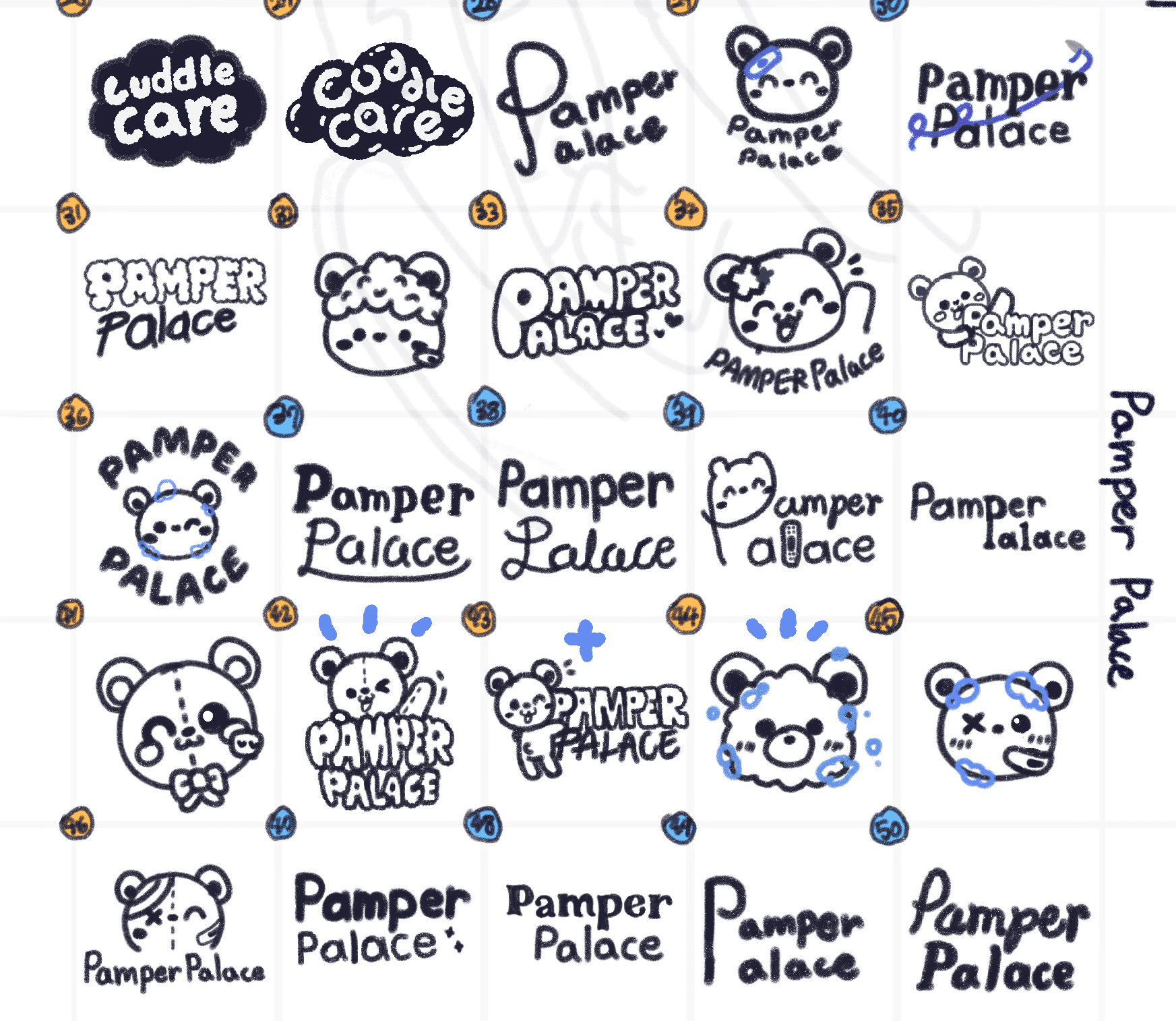 These are the final logos. I ended up using a fluffy teddy bear with some bubbles around it as a mascot because I wanted the logo to clearly visualize the main puprose of the company. I also wanted the fluffy teddy bear to emphasize a more welcoming vibe of the company.