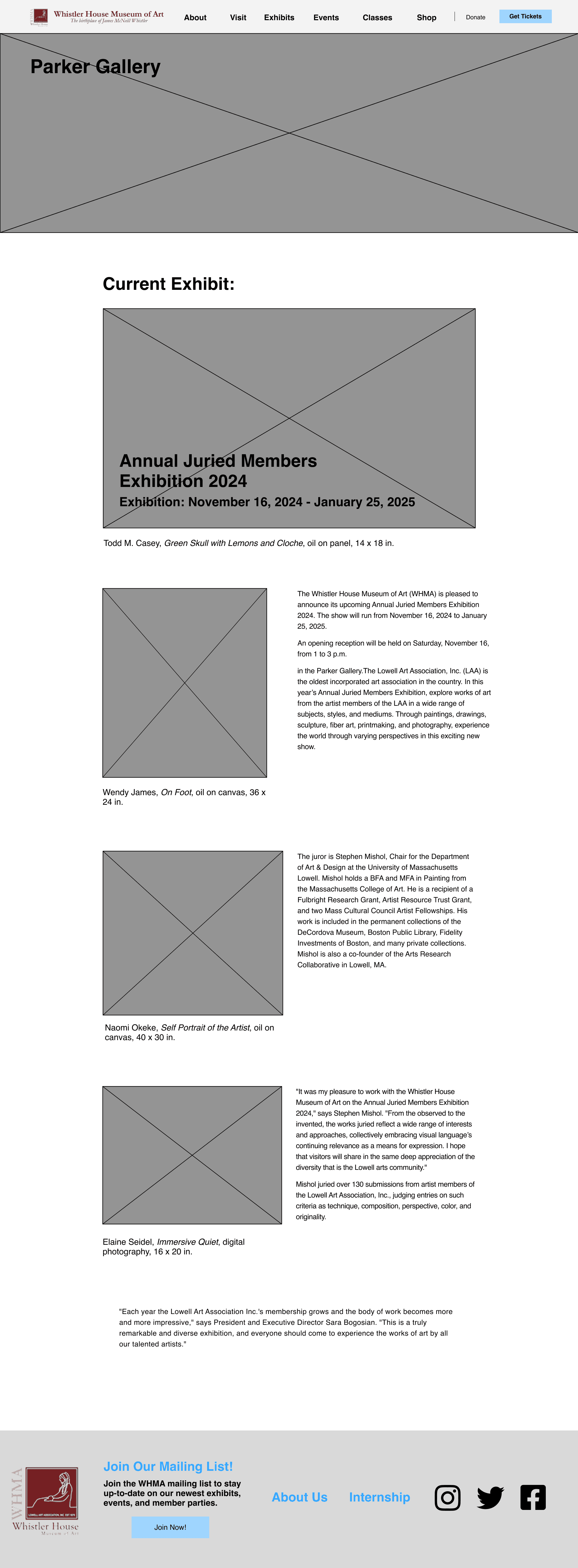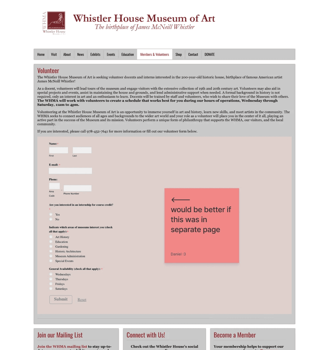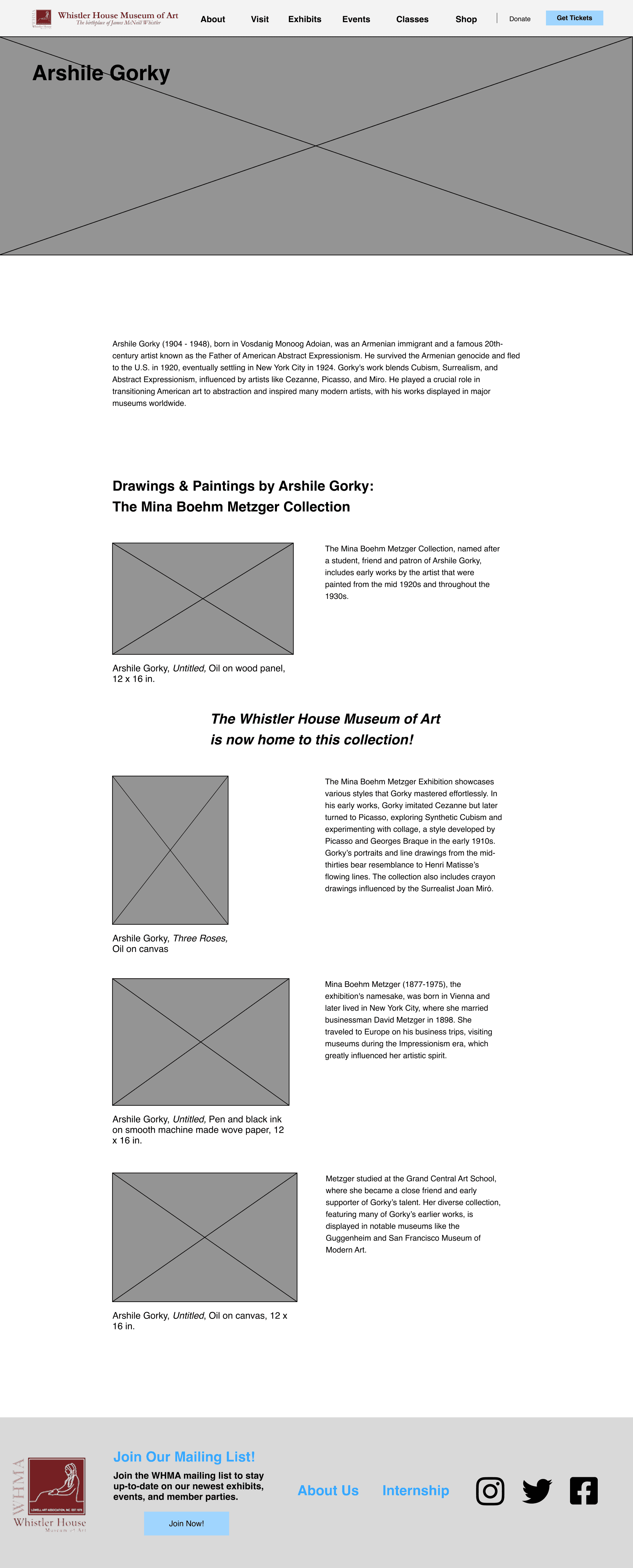 For this project, I picked the Whistler House Museum of Art because I felt that the website did not reflect the beauty and essence of the museum. The entire website had all of its text and artwork featured in gray boxes.