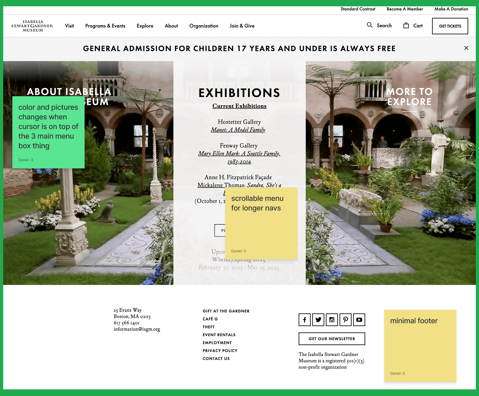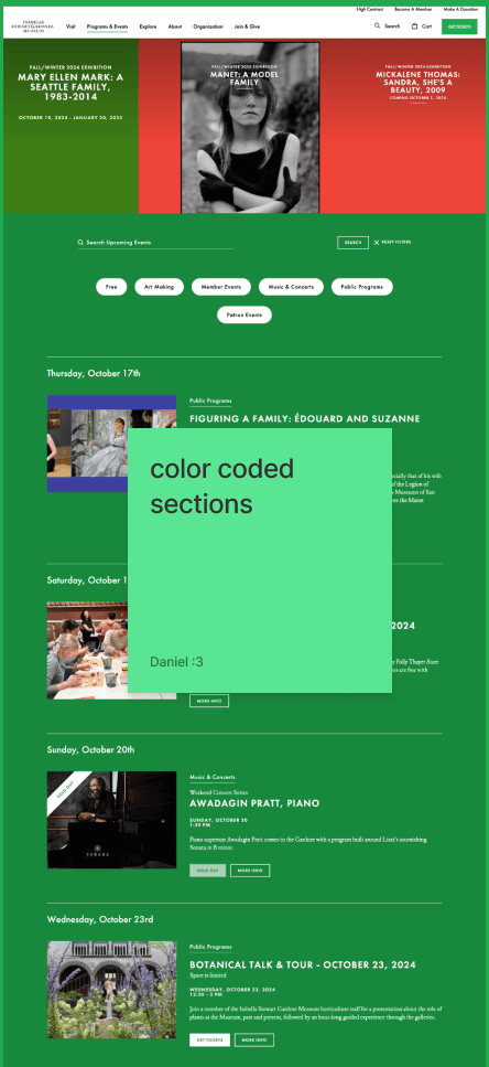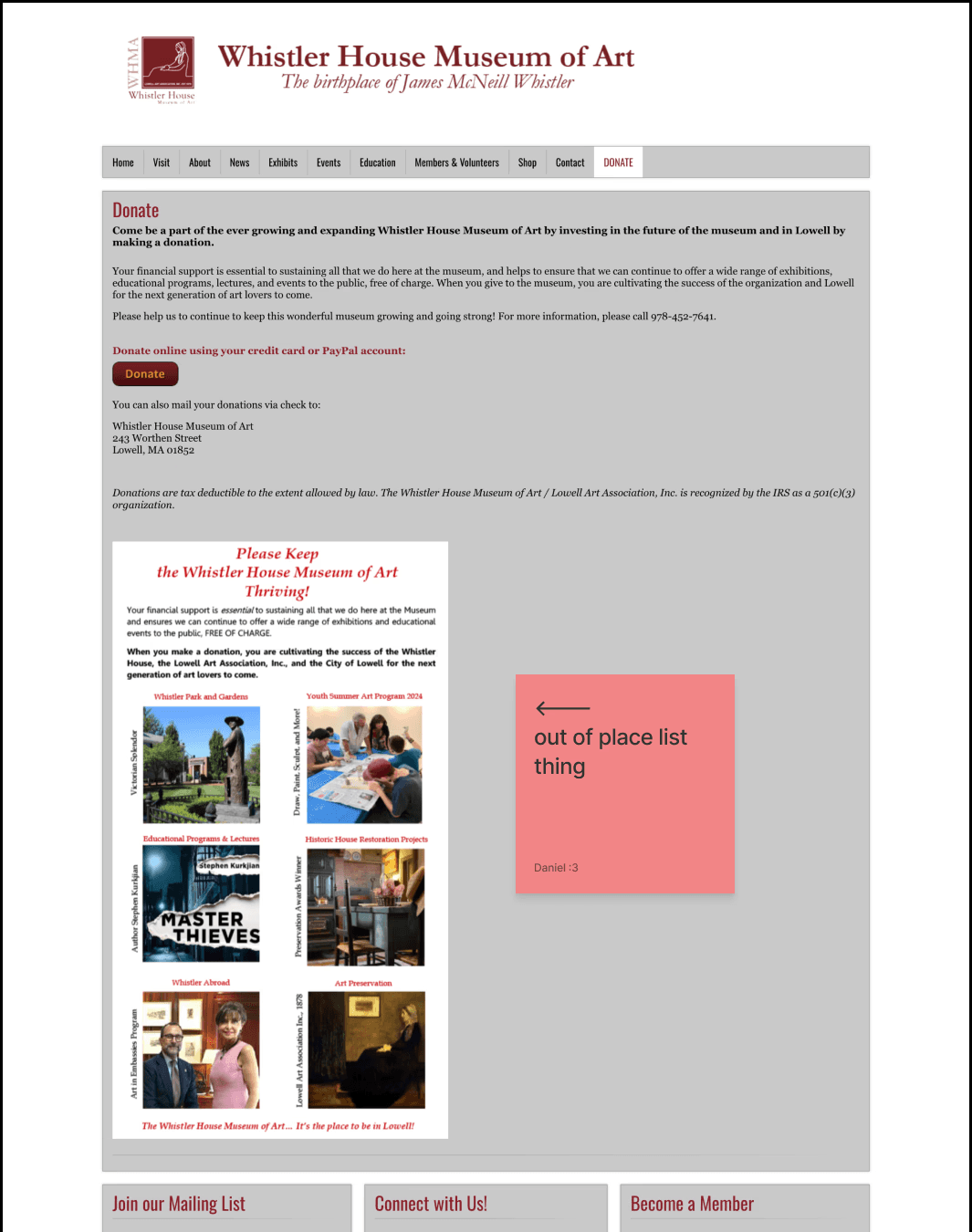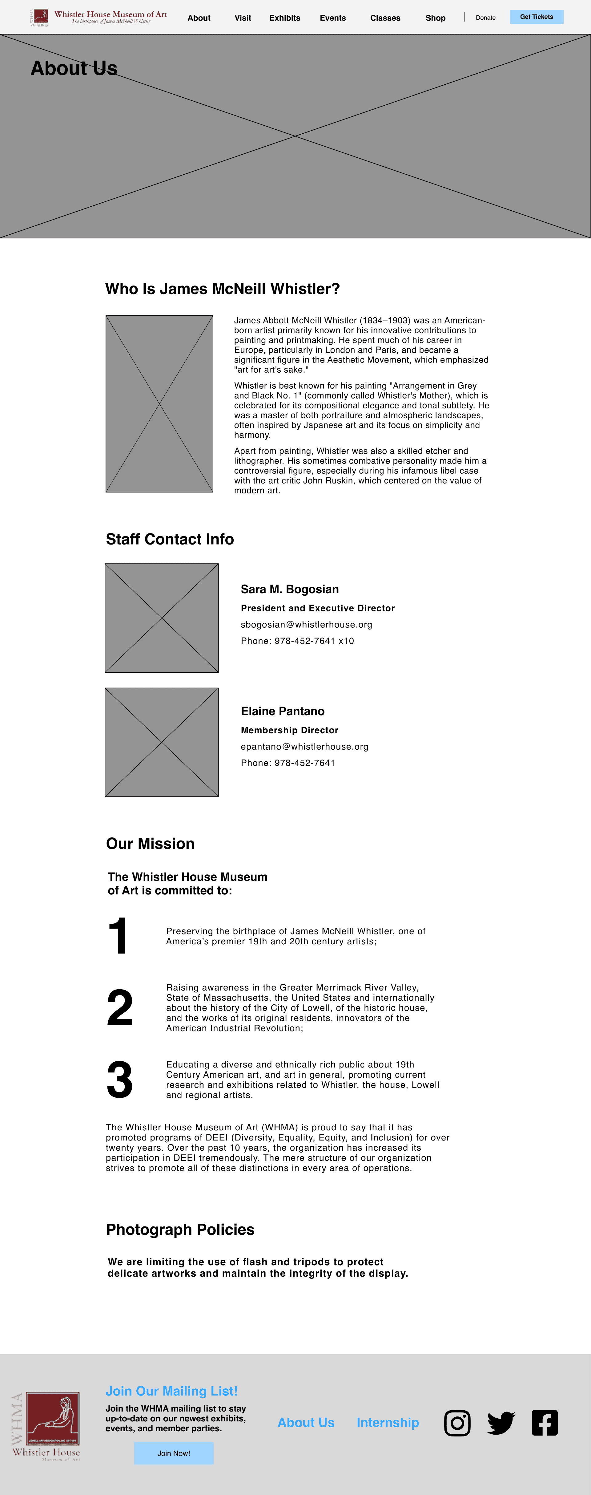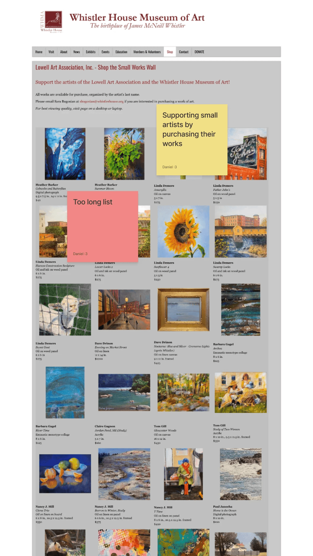 For this project, I picked the Whistler House Museum of Art because I felt that the website did not reflect the beauty and essence of the museum. The entire website had all of its text and artwork featured in gray boxes.