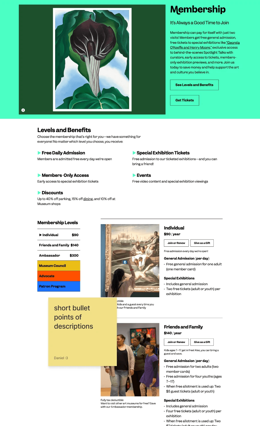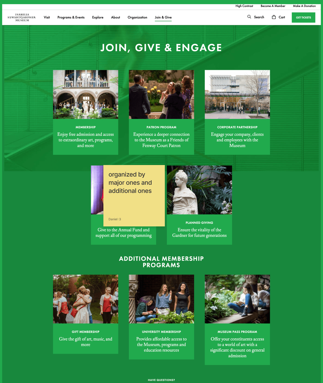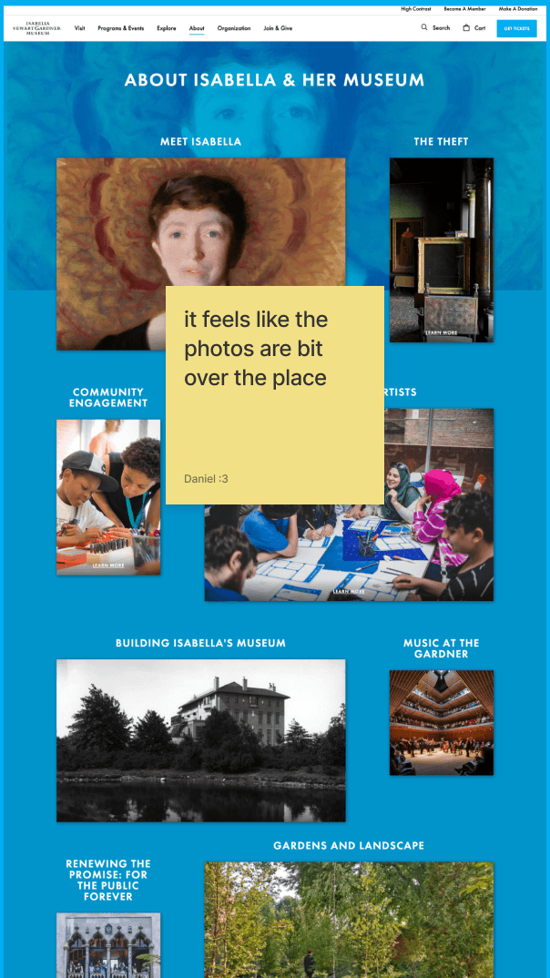 First, I scanned through the museum's website and identified areas of improvement. Then, I researched a couple of competitors' websites for inspiration and to identify how other museums were designing their websites.