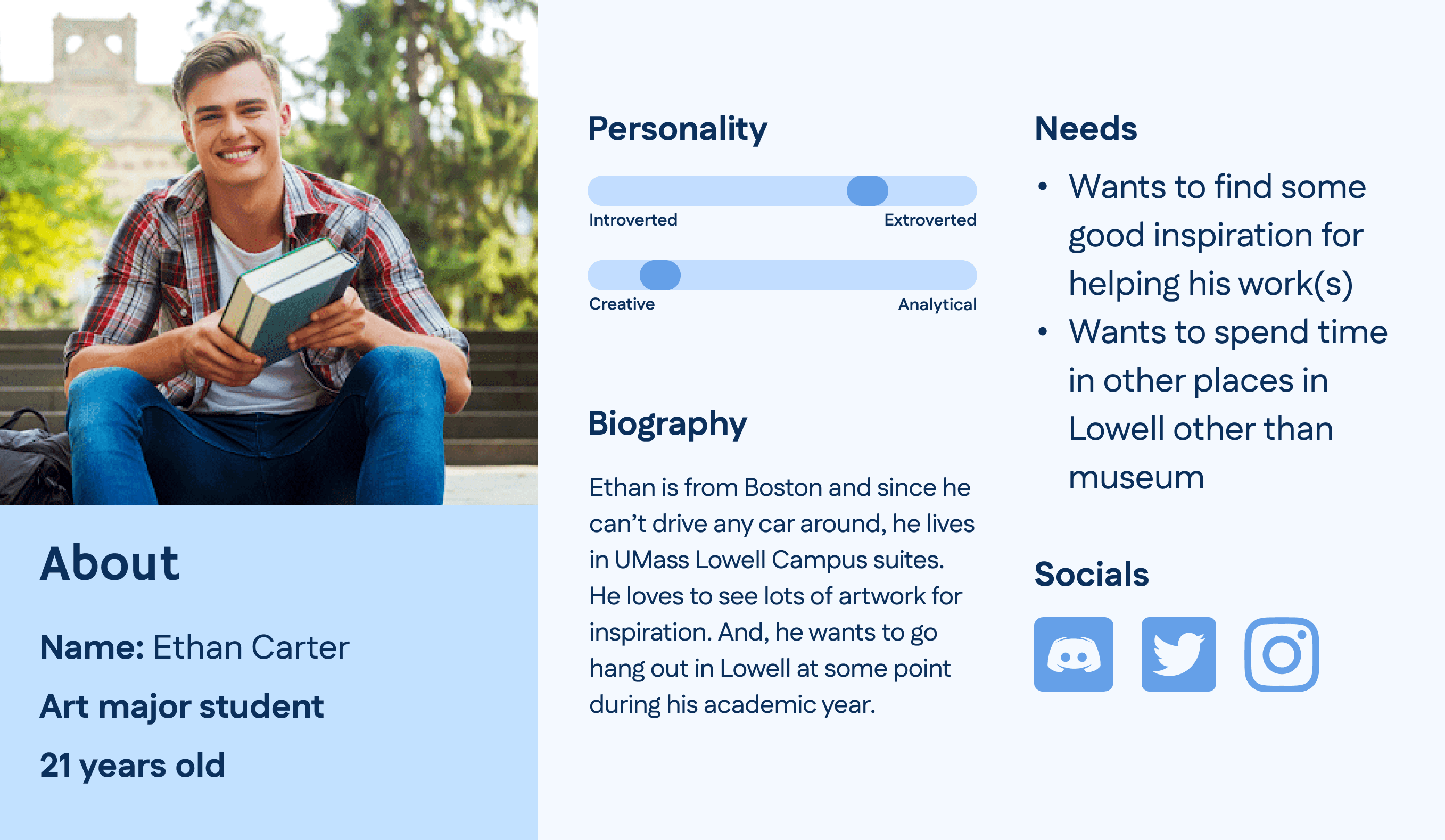 I created a user persona to help me navigate and decide what design features would make the most sense for this type of audience.